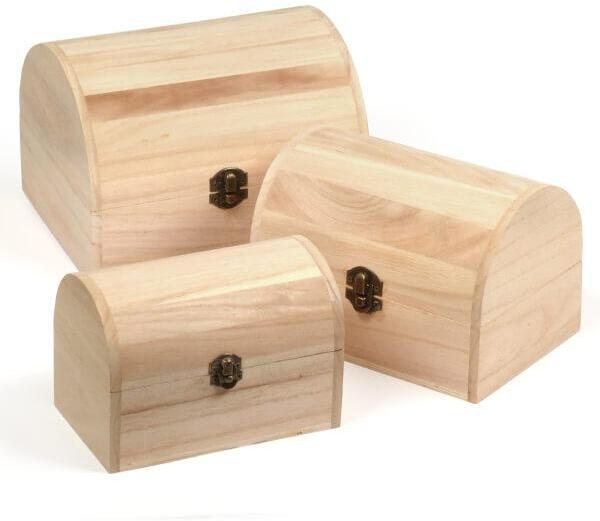 Fa dobozkészlet, 3 különböző méretű domború tetejű kincsesláda  emlékek, csecsebecsék, kincsek, kisebb-nagyobb ékszerek és más egyéb apróságok tárolására.