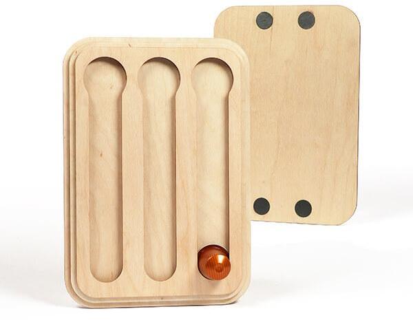 mágneses, hűtőre helyezhető fa kapszulatartó 15 db Nespresso kapszula  tárolására alkalmas.