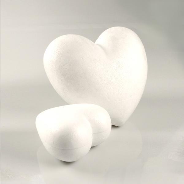 Hungarocell szív, 5 cm Könnyű formák, amelyeket bármilyen dekorációs festékkel festhetünk, használhatunk sötétben világító festéket, csillámport, lakkozhatjuk vagy díszíthetjük repesztő lakkal. Ragaszthatunk a festett formára kagylókat, fadíszeket, száraz növényeket, zsinórokat, stb. Díszíthetjük szalvétatechnikával, teletűzdelhetjük varrható flitterekkel, amelyeket speciális rövid gombostűkkel erősíthetünk fel. Gyönyörű dekorációk készíthetők textil borítással, articsóka és patchwork technikával. Beboríthatjuk natúr papírokkal, vagy újságpapírral. 5 cm