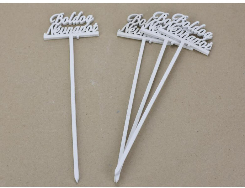 Beszúrós "Boldog névnapot" felirat fehér 29cm 4db/csomag - papelito