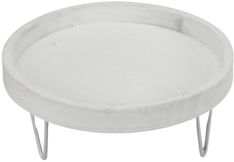 Kerek dekor tálca, masszív és erős fából. Asztali készítményekhez javasolt dekorációs alap, ami fém talp segítségével emelkedik ki a közönséges asztali díszítők közül. Magassága előnyt jelent az olyan kreatív alkotók számára, akik nem csak a tálcát díszítik, de szeretnék a tálca magasságát beépíteni egy harmonikus, összetett kompozícióba.