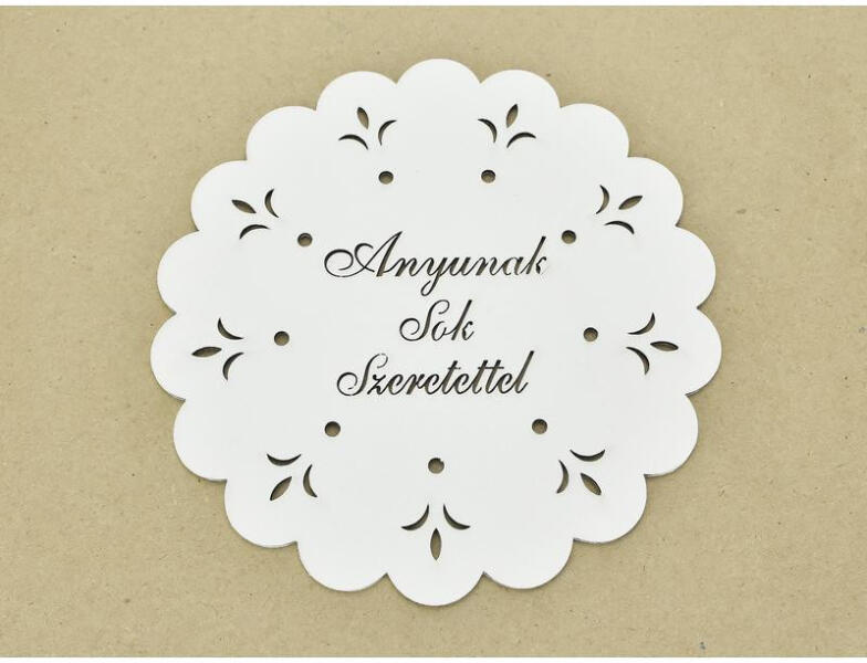 Díszes "Anyunak sok szeretettel" tábla koszorúra fehér 18cm - csinaldmagadshop