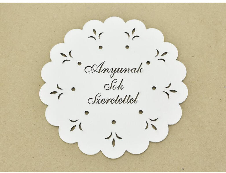Díszes "Anyunak sok szeretettel" tábla koszorúra fehér 18cm - papelito