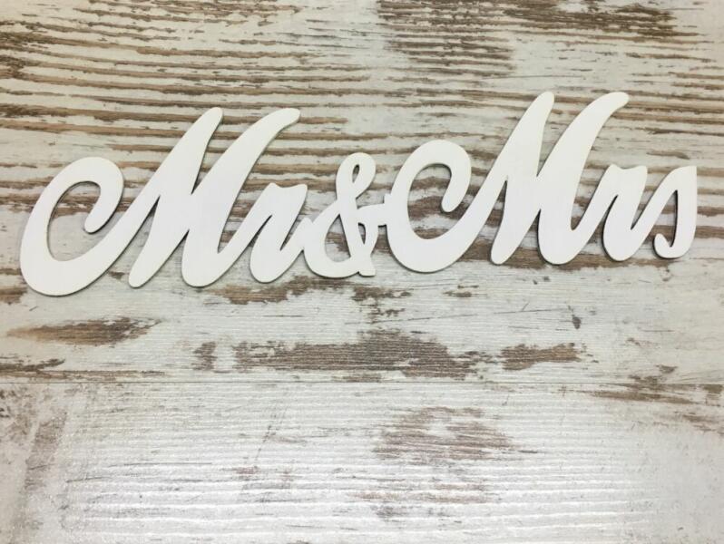 Fa - "Mr & Mrs" írott felirat fehér 30cm - kosarbolt