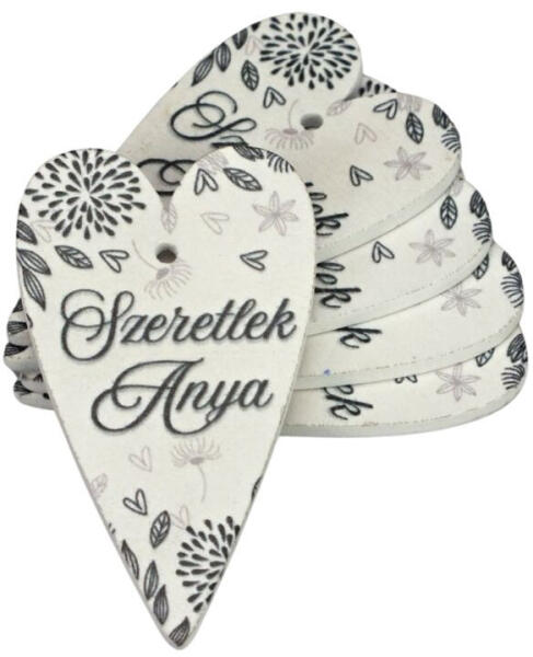 Fa nyomtatott szív "Szeretlek anya", 1db, színes 6*3, 5cm 6638