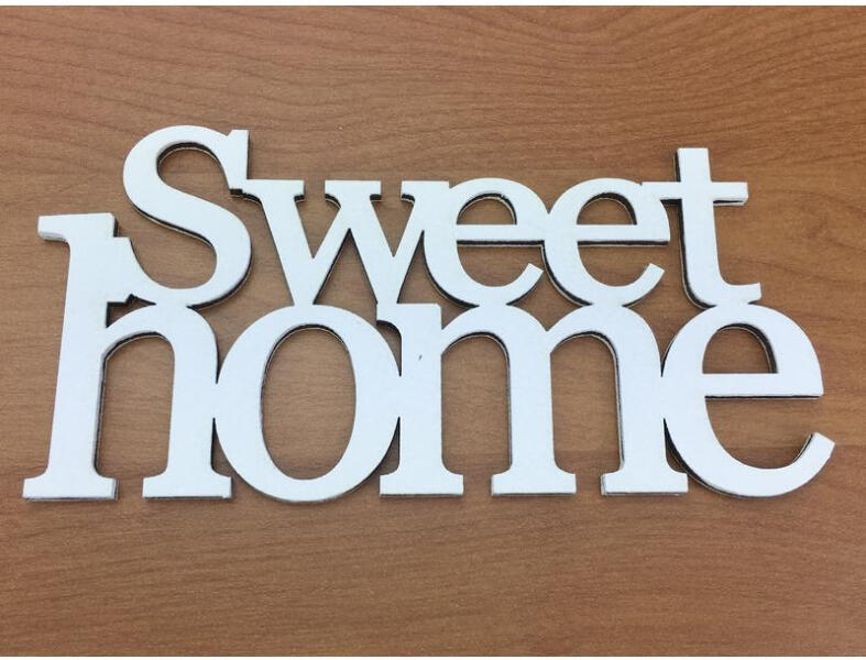 Fa - "Sweet Home" felirat koszorúra 7x14cm fehér - csinaldmagadshop