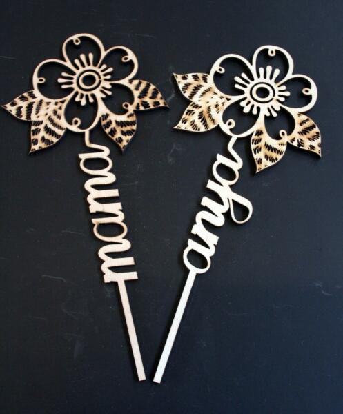 A lézerrel vágott fa virágok rétegelt lemezből készülnek, méretük 15 x 30 cm.