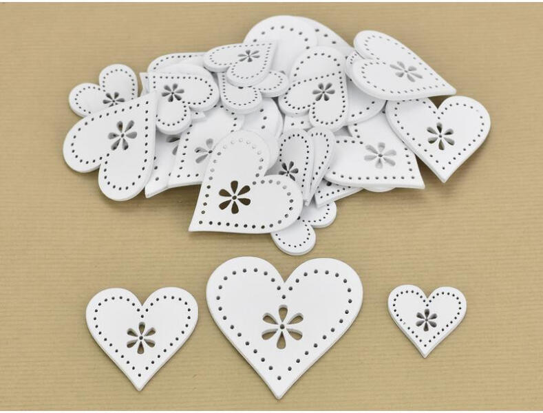 Fa virágdíszes szív fehér 30db/csomag - csinaldmagadshop