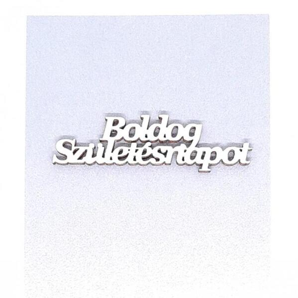 Fehér fa 'Boldog születésnapot' felirat. Mérete: 60x16x2 mm