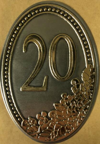 Fém-Arany évszámos címke 20,  magas minőségű Magyarországon gyártott egyedi címke. Könnyen felhelyezhető, otthoni felhasználásra alkalmas öntapadós fémcímke. Árérték aránya jó,