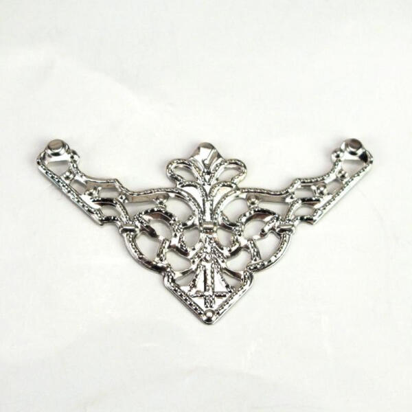 Vékony fém ezüst színű sarokdísz, fa dobozokra és egyéb alapokhoz.