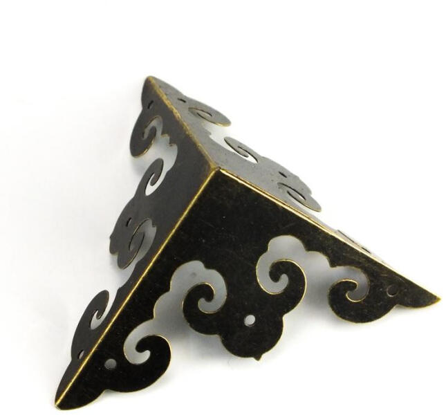 Fém sarokvédő elem fa dobozokhoz és egyéb tárgyak díszítéséhez. Szögek a csomagban.