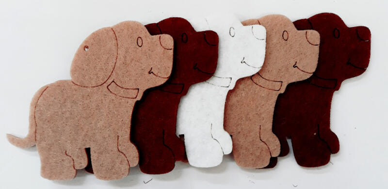 Filcfigura kutyák 5db/cs, kb. 6cm 23219 (23219)