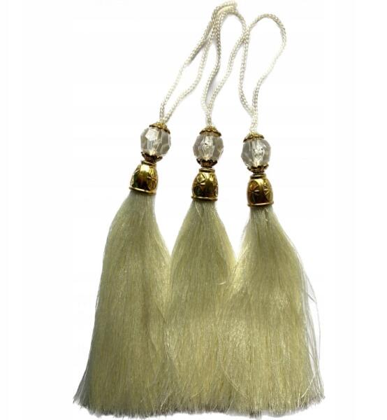 Gipiurowo Aranyszínű gyöngyökkel díszített fülbevaló, krémszínű, 12 cm (chwost)ALLEGRO