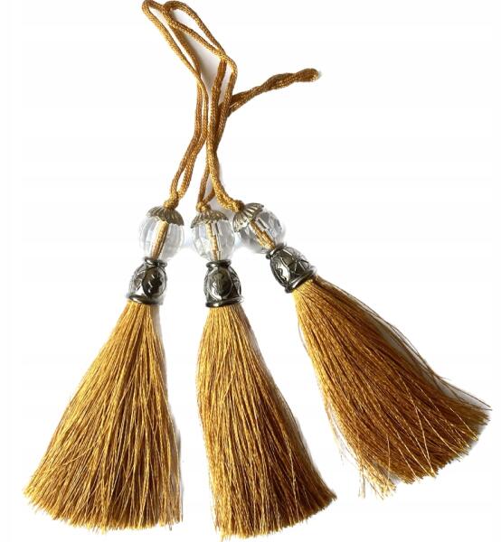 Gipiurowo Ezüst színű gyöngyökkel díszített fülbevaló, mustársárga, 9 cm (chwost)