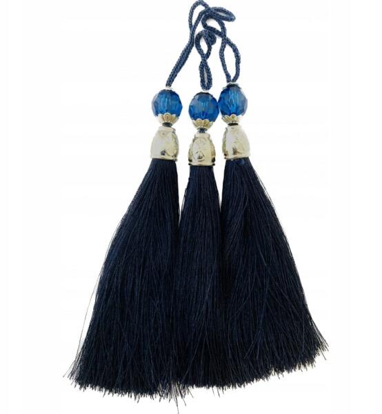 Gipiurowo Ezüst színű gyöngyökkel díszített fülbevaló, sötétkék, 12 cm (chwost)