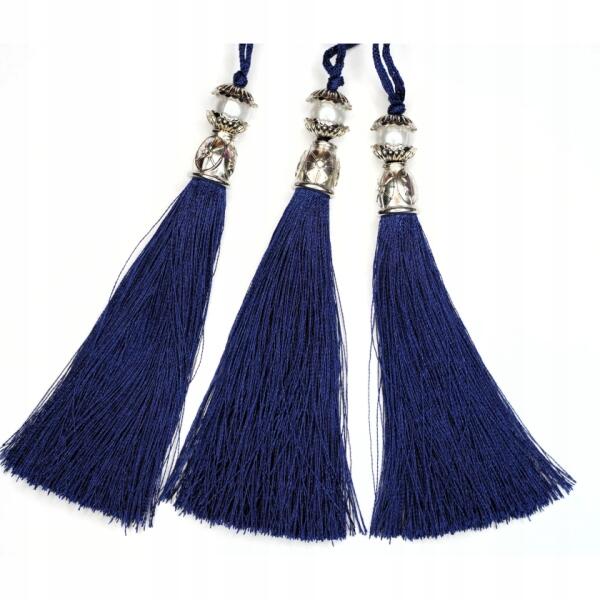 Gipiurowo Gyöngy és ezüst gyöngyökkel díszített fülbevaló, sötétkék, 12 cm (Z perłą i kor srebrnym, granatowy, 12 cm)ALLEGRO