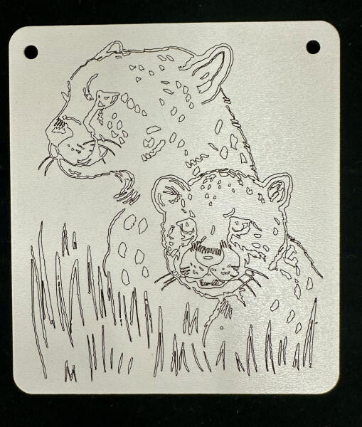 Ez a különleges falidekoráció egy gyengéd pillanatot örökít meg: a bátor leopárdanya és kíváncsi kölyke együtt pihennek a fűben. A finom vonalrajz és a letisztult megjelenés harmonikus, mégis karakteres hangulatot teremt bármely helyiségben.