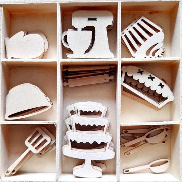 Lézervágott figurák: cukrászat, 9 db/cs. Méretük: 25-40 mm