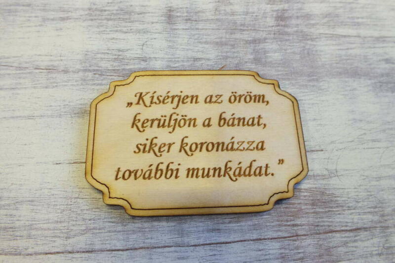 Fa dísztábla: "Kísérjen az öröm... " - Dekoráció és ajándék ? Ez a gyönyörű, lézergravírozott fa dísztábla egy kedves üzenetet hordoz: "Kísérjen az öröm, kerüljön a bánat, siker koronázza további munkádat. " Tökéletes ajándék szeretteinek, barátainak, vagy akár önmagadnak is! ✨ Mitől különleges ez a termék?Egyedi üzenet: Motiváló és pozitív üzenettel, ami minden nap mosolyt csal az arcodra. ? Természetes anyag: Kiváló minőségű fából készült, natúr színben. Sokoldalú felhasználás: Dekorációként használható az otthonodban, de akár ajándéknak is tökéletes. ? Könnyen díszíthető: Festheted, dekupázsolhatod, vagy más technikákkal is feldíszítheted a saját ízlésed szerint. ? Méretek: (A pontos méreteket itt kell feltüntetni) Anyag: Fa Rendeld meg most, és vidd haza ezt a különleges kis dísztáblát!