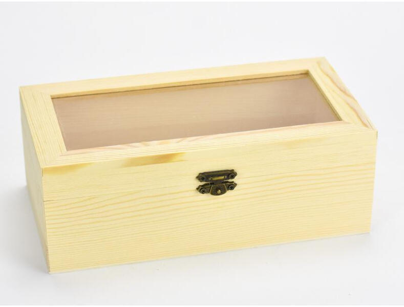 Átlátszó tetős fadoboz. A doboz teteje csattal zárható.
