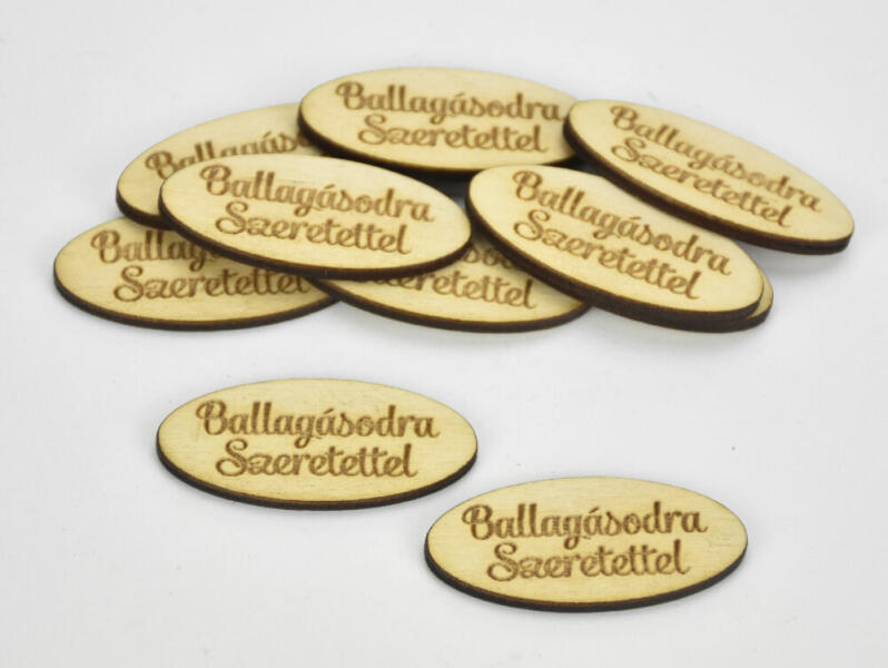Natúr fa - "Ballagásodra Szeretettel" ovál tábla 2x4, 5cm 10db/csomag - kosarbolt