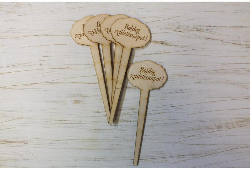 Natúr fa - Beszúrós "Boldog születésnapot! "gravírozott tábla 5db/csomag - papelito
