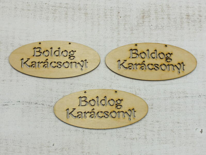 Natúr fa - "Boldog Karácsonyt" áttört tábla 3db/csomag - kosarbolt