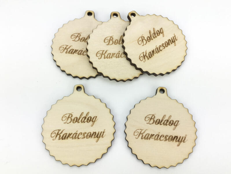 Natúr fa - "Boldog Karácsonyt" fodros gömb kicsi 5db/csomag - kosarbolt