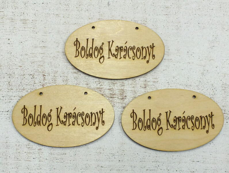 Natúr fa - "Boldog karácsonyt" gravírozott ovál tábla 9x5, 5cm 3db/csomag - kosarbolt