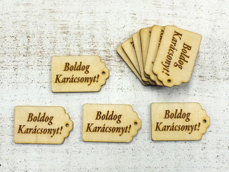 Natúr fa - "Boldog karácsonyt" gravírozott scrapbook tábla 10db/csomag - kosarbolt