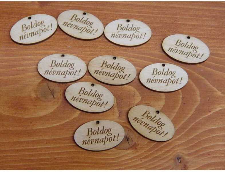 Natúr fa - "Boldog névnapot" gravírozott ovál tábla 10db/csomag - csinaldmagadshop