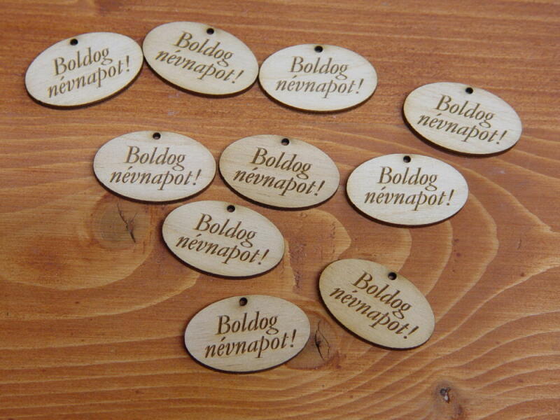 Natúr fa - "Boldog névnapot" gravírozott ovál tábla 10db/csomag - kosarbolt