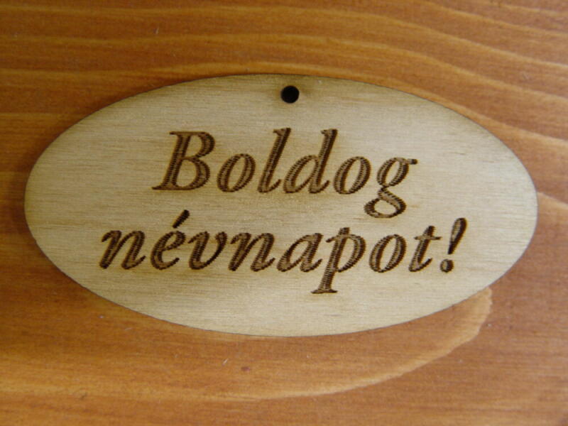Natúr fa - "Boldog Névnapot" gravírozott ovál táblák 4x8cm 5db/csomag - kosarbolt