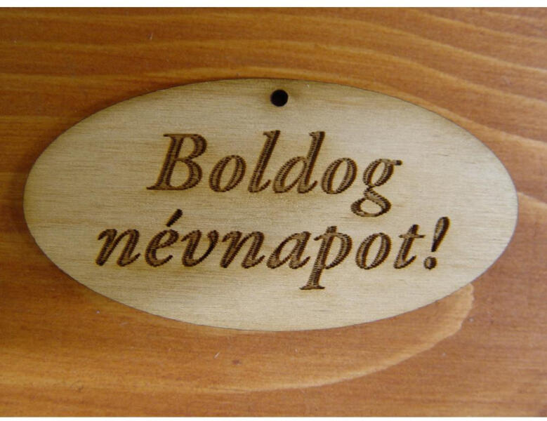 Natúr fa - "Boldog Névnapot" gravírozott ovál táblák 4x8cm 5db/csomag - papelito