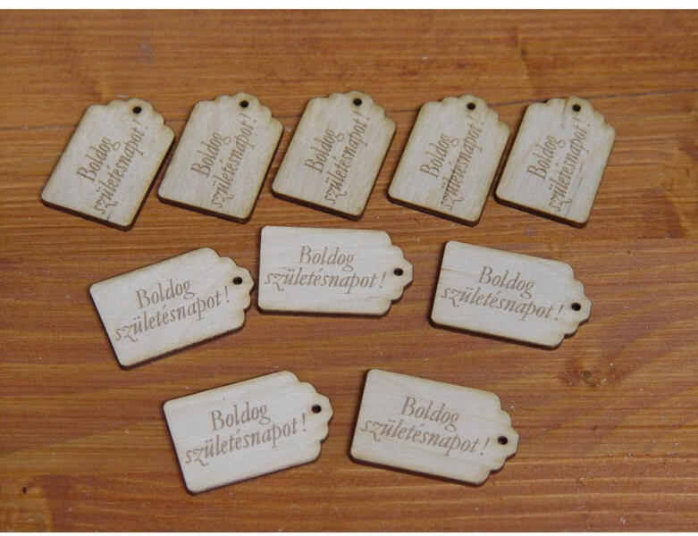 Natúr fa - "Boldog Születésnapot" gravírozott scrapbook táblák 3x4, 5cm 10db/csomag - papelito