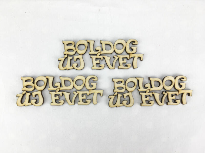 Natúr fa - "BOLDOG ÚJ ÉVET" felirat 9cm 3db/csomag - kosarbolt