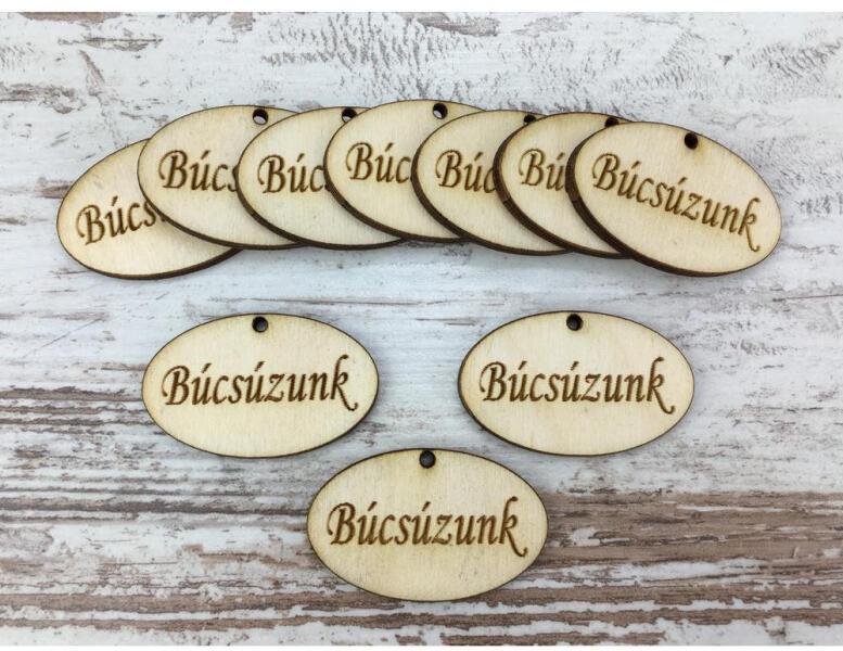 Natúr fa - "Búcsúzunk" ovál tábla 2, 5x4cm 10db/csomag - papelito