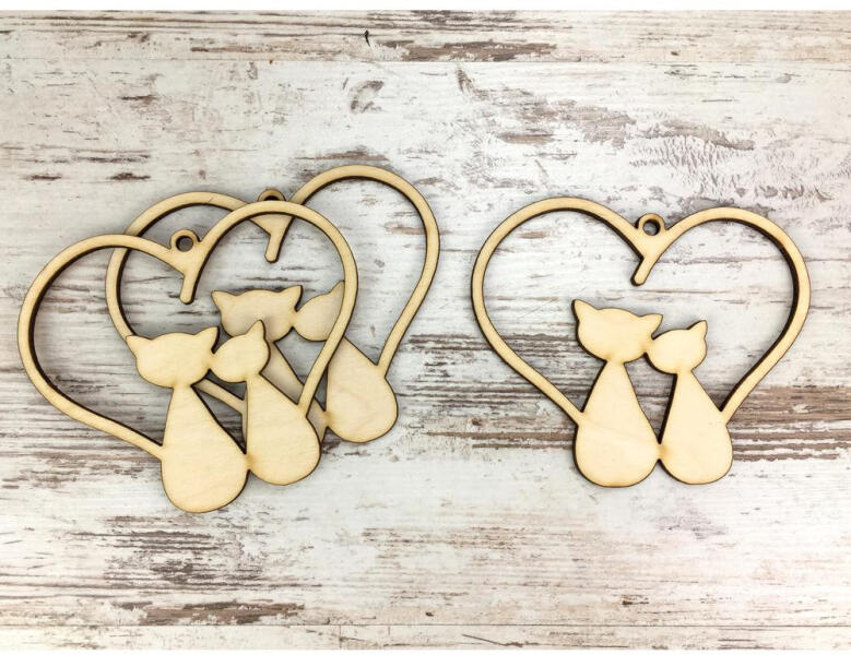 Natúr fa - Cicák szívben 10cm 3db/csomag - papelito