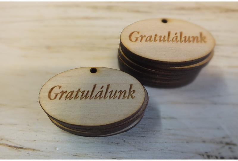 Natúr fa - "Gratulálunk" ovál táblák 2, 5x4cm 10db/csomag - csinaldmagadshop