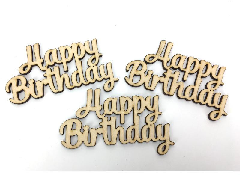 Natúr fa - " Happy Birthday " felirat 6x10cm 3db/csomag - csinaldmagadshop