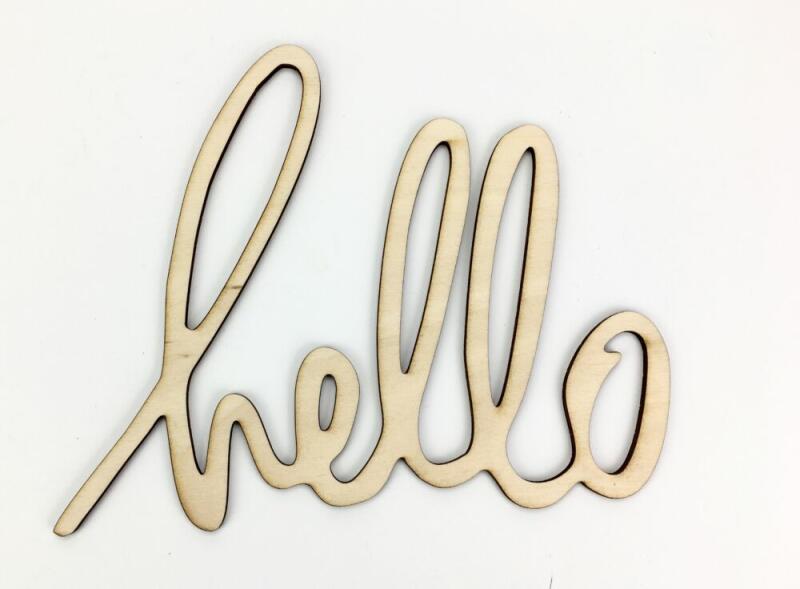 Natúr fa - " hello" írott felirat 16x20cm - kosarbolt