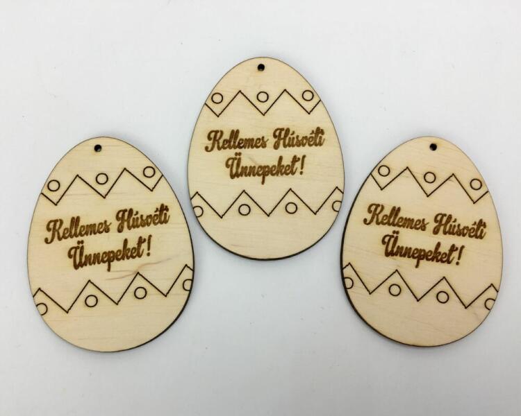 Natúr fa - "Kellemes Húsvéti Ünnepeket! " gravírozott tojás 6x8cm 3db/csomag - kosarbolt