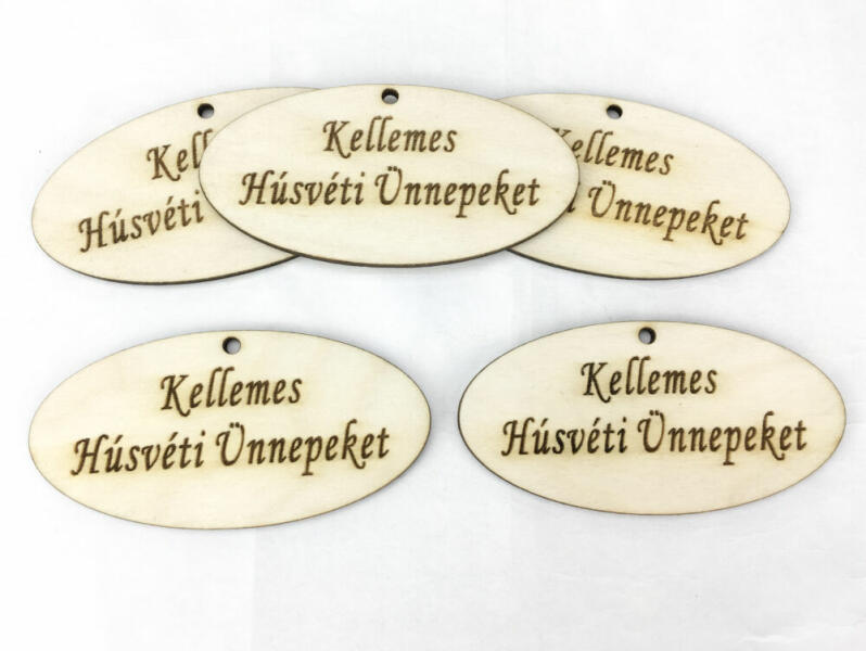 Natúr fa - "Kellemes Húsvéti Ünnepeket" ovál tábla 4x8cm 5db/csomag - kosarbolt