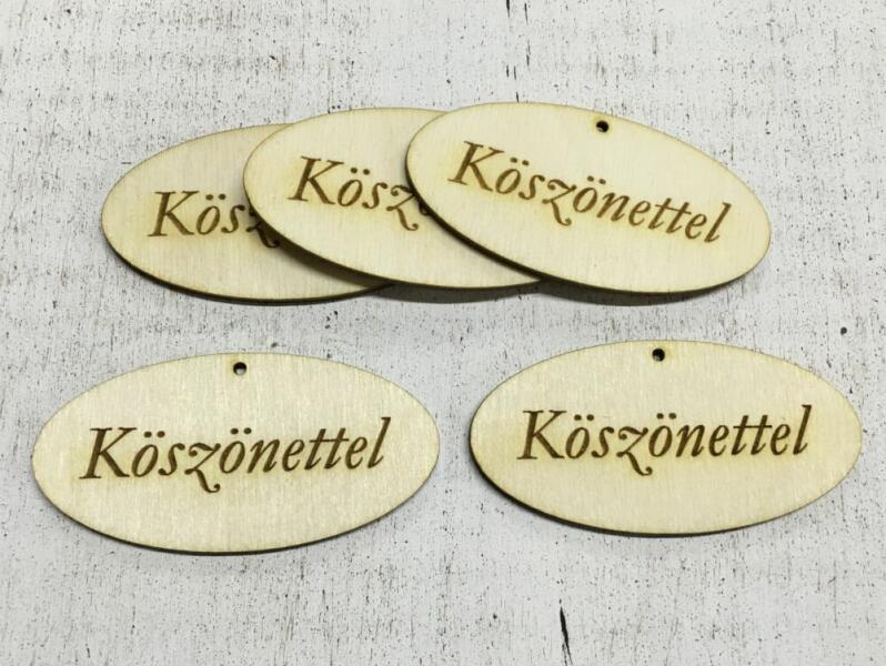 Natúr fa - "Köszönettel" gravírozott ovál tábla 4x8cm 5db/csomag - kosarbolt