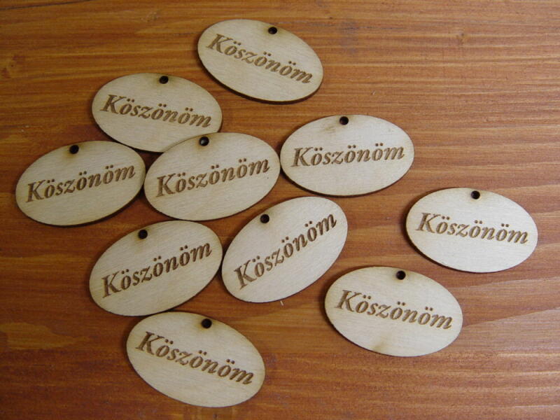 Natúr fa - "Köszönöm" gravírozott ovál tábla 2, 5x4cm 10db/csomag - kosarbolt