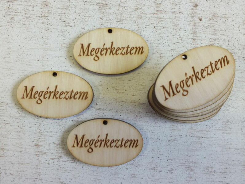 Natúr fa - "Megérkeztem" gravírozott ovál tábla 10db/csomag - kosarbolt
