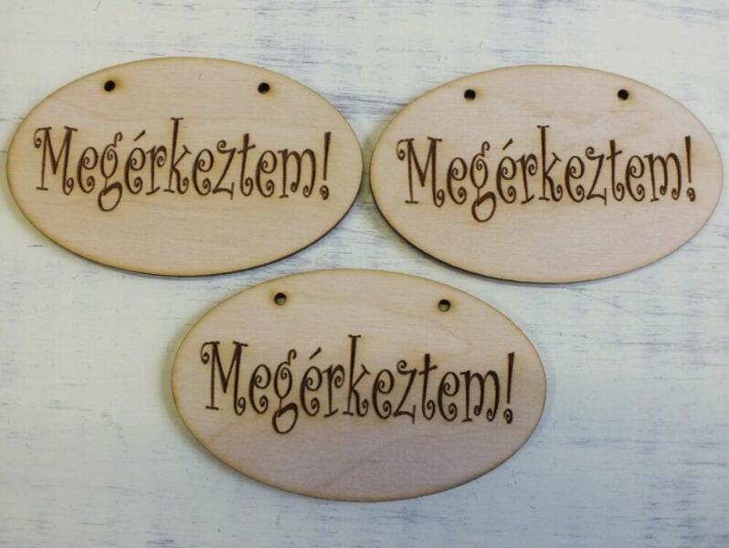 Natúr fa - "Megérkeztem" gravírozott ovál tábla 3db/csomag - kosarbolt