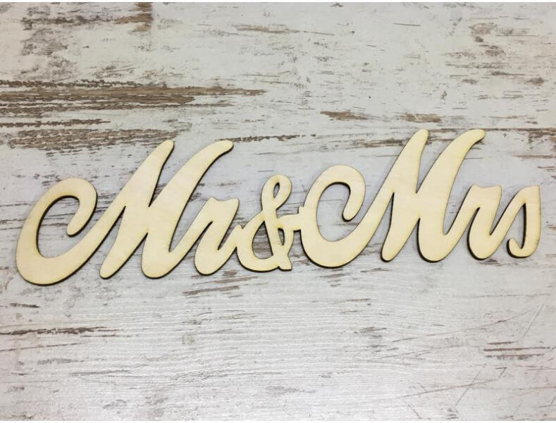 Natúr fa - "Mr & Mrs" írott felirat 30cm - csinaldmagadshop