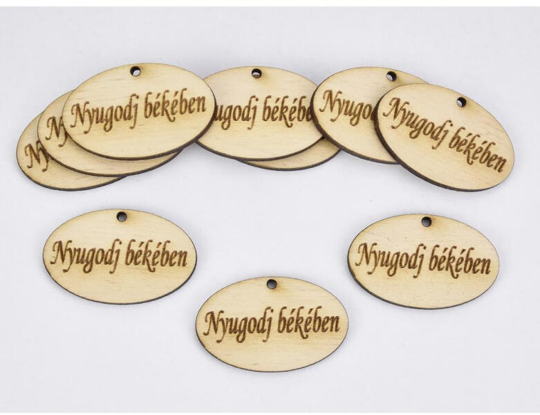 Natúr fa -"Nyugodj békében! " ovál gravírozott tábla 2, 5x4cm 10db/csomag - papelito